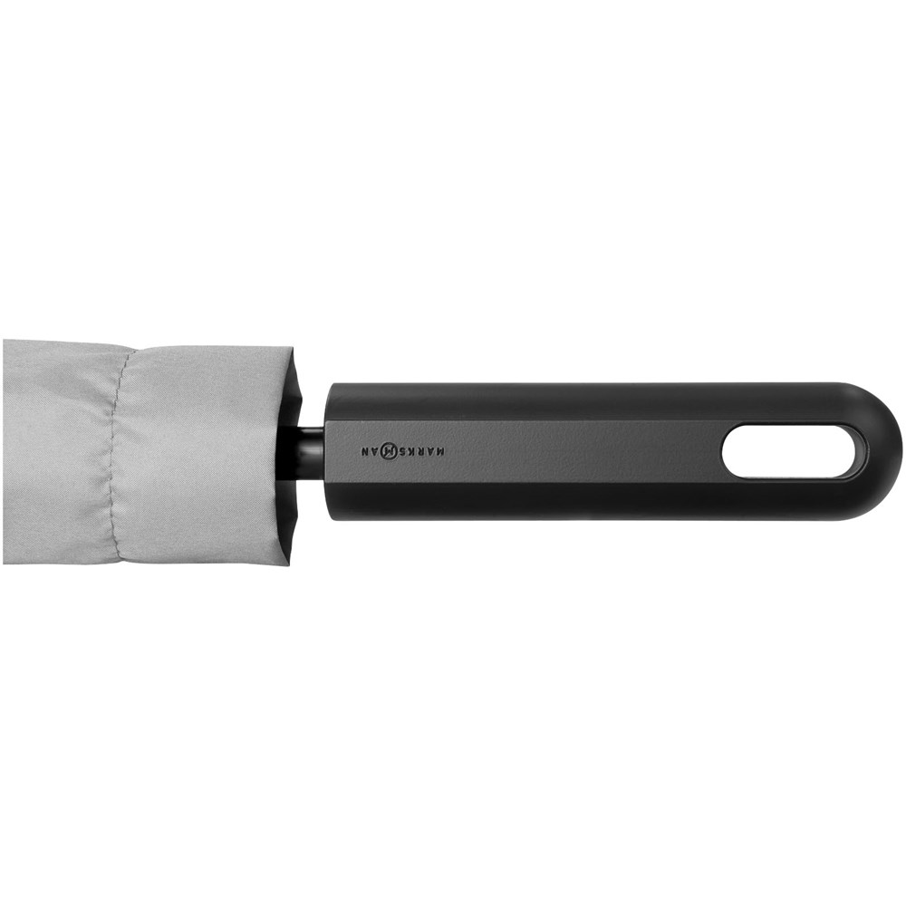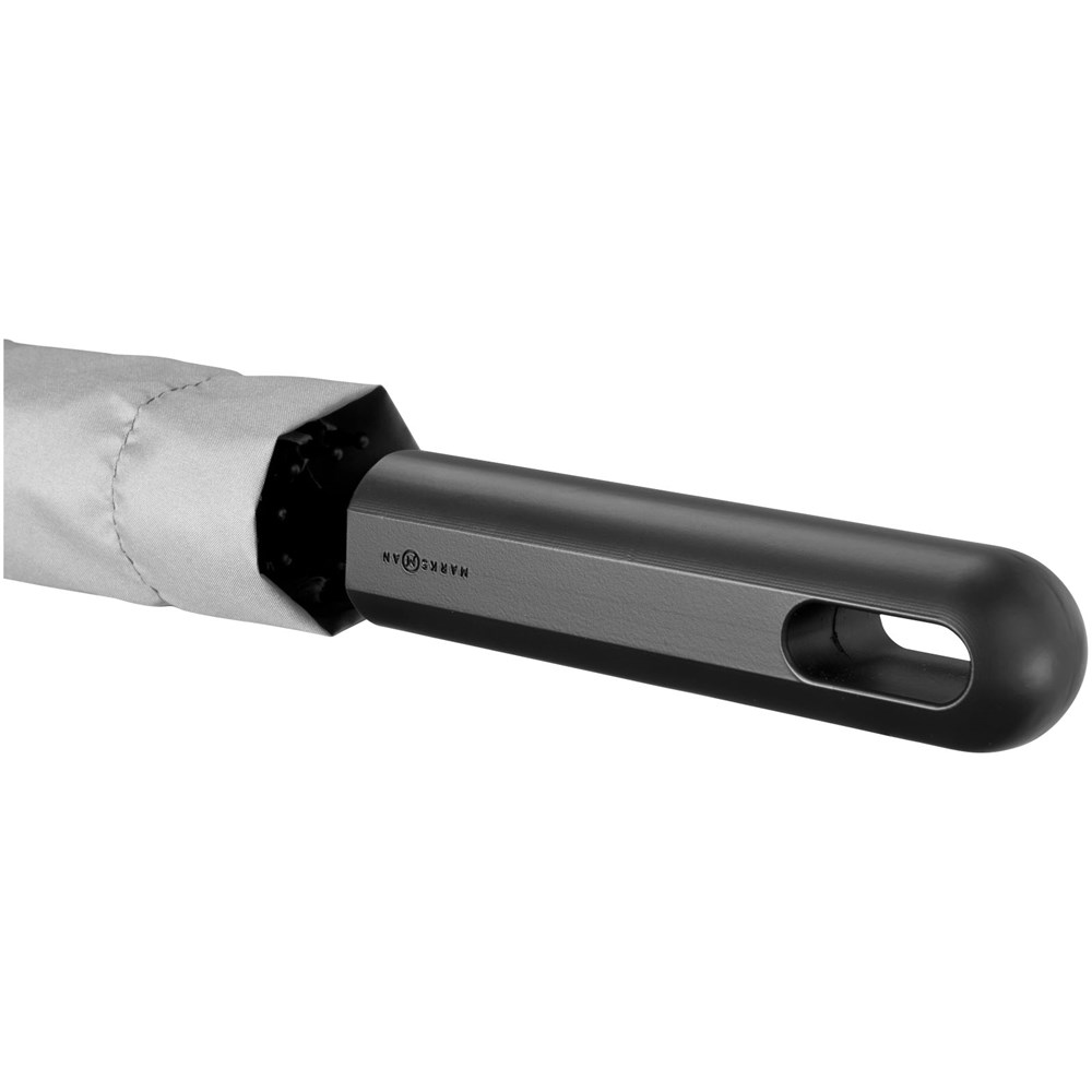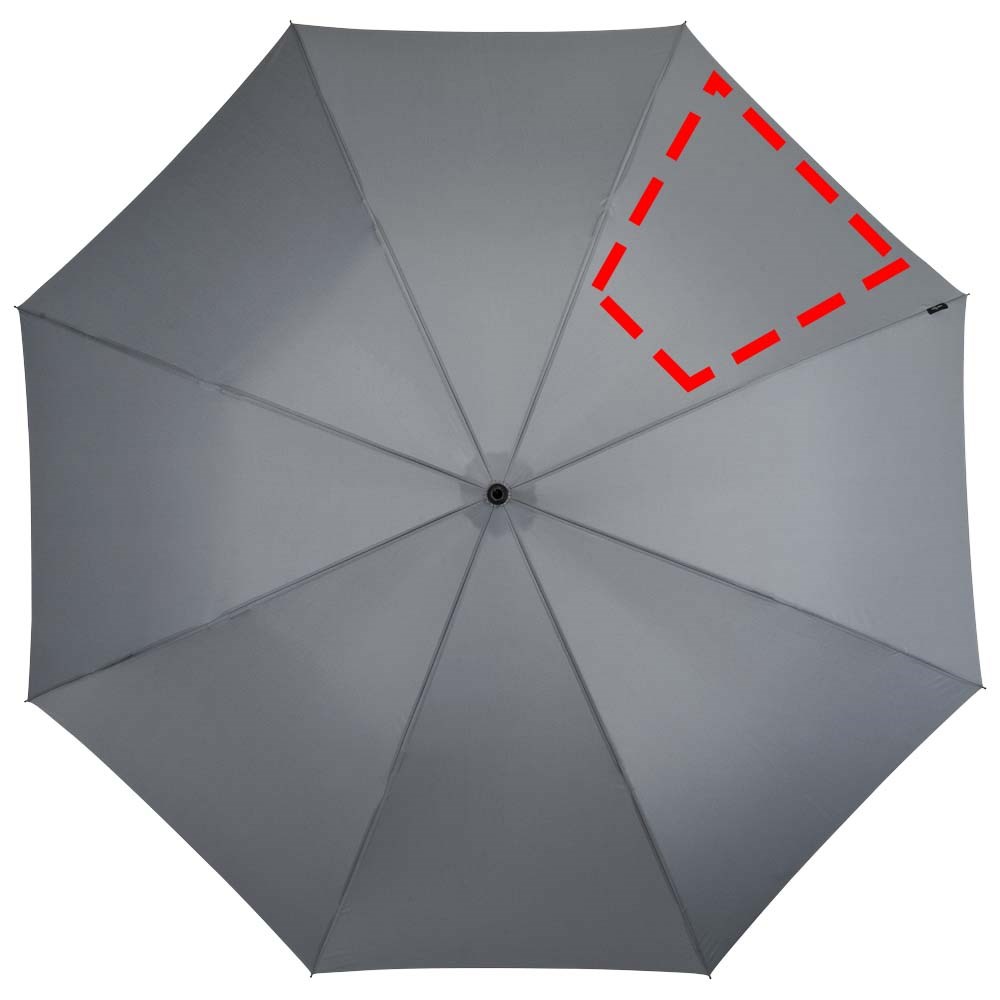 Exclusief ontworpen paraplu met metalen schacht, glasvezel baleinen en een met rubber beklede kunststof handvat. Geleverd met bijpassende hoes in de kleur van het scherm.