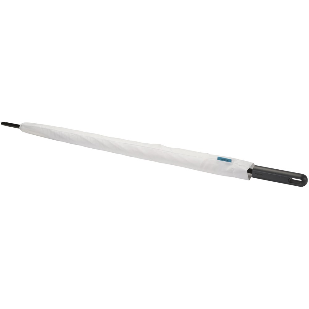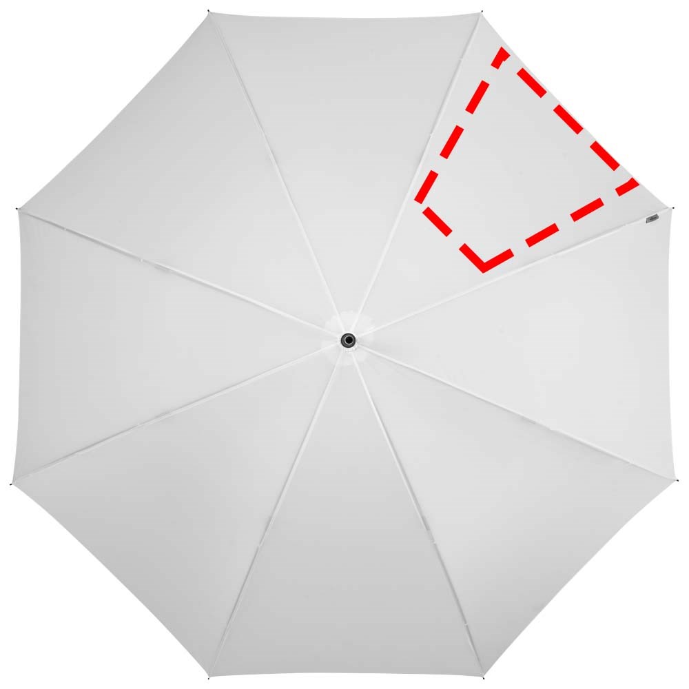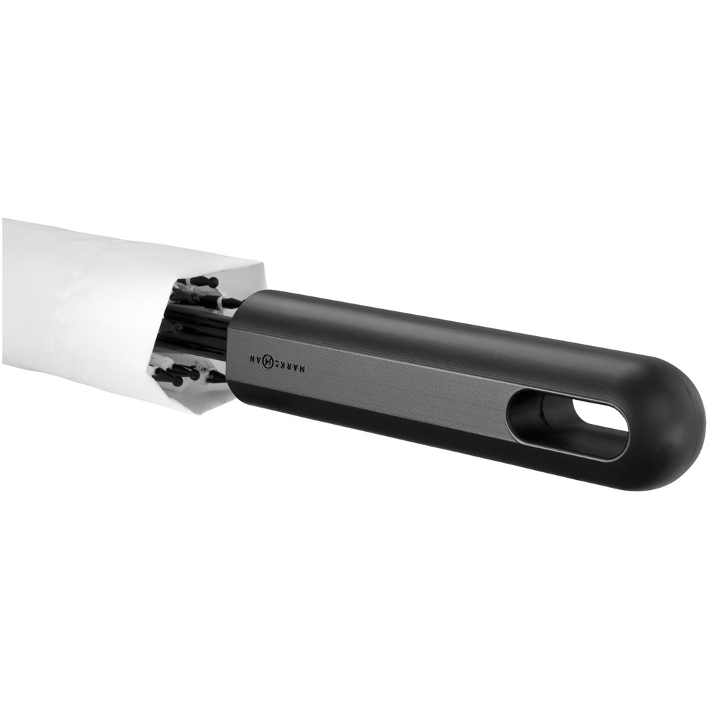 Exclusief ontworpen paraplu met metalen schacht, glasvezel baleinen en een met rubber beklede kunststof handvat. Geleverd met bijpassende hoes in de kleur van het scherm.