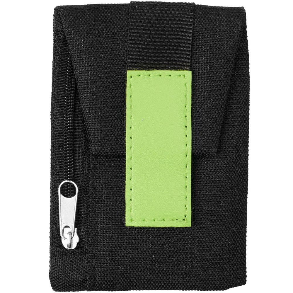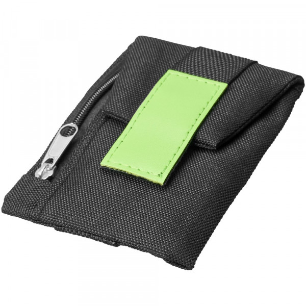 Kleine maar handige portemonnee die aan een schoen of broek kan worden bevestigd. Wordt geleverd met een ritssluiting, klittenbandsluiting en met verborgen vakjes om waardevolle spullen te beschermen tijdens het sporten. Groot decoratievlak aan de voorkant.