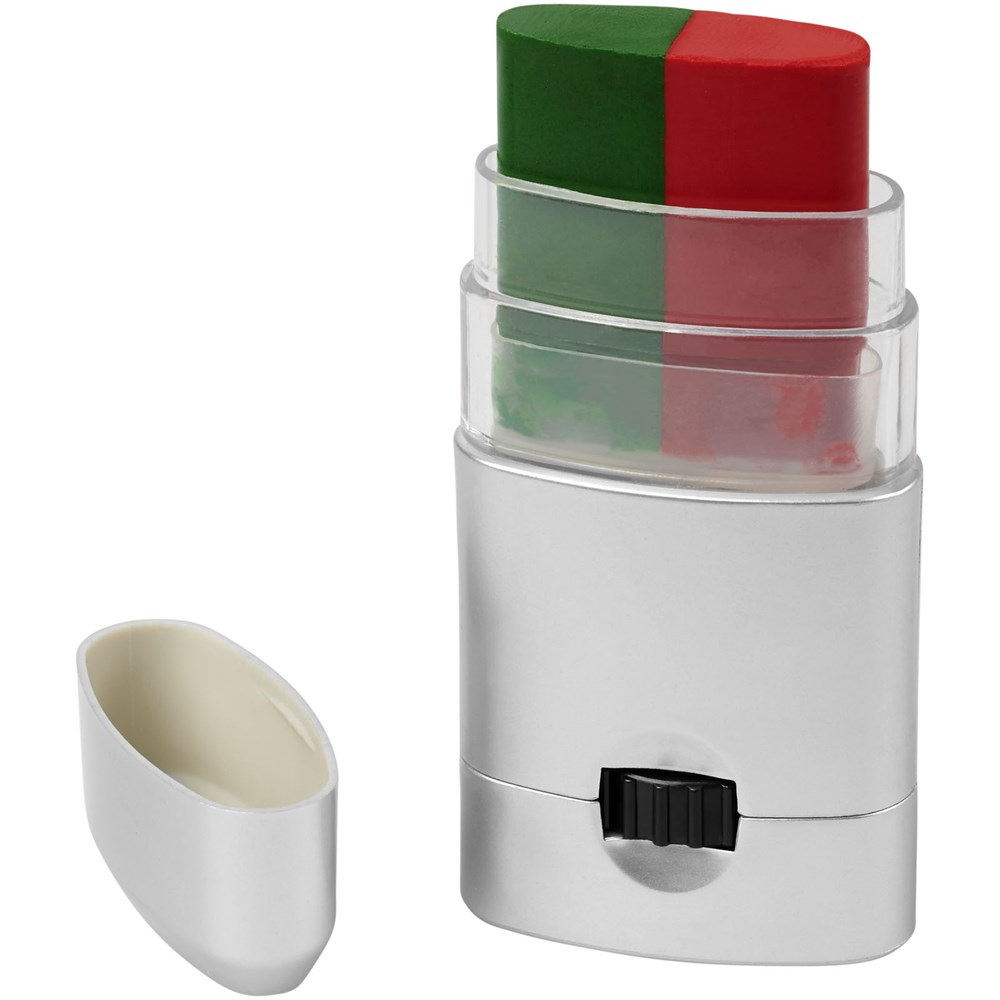 Gemakkelijk te reinigen bodypaint beschikbaar in een breed scala aan kleurencombinaties die de vlaggen van Frankrijk, Duitsland, Italië, Nederland, België, Portugal, Spanje, Oostenrijk, Denemarken, Zwitserland, Zweden en Polen vertegenwoordigen. Kan ook op het gezicht worden aangebracht en kan worden verwijderd met make-upreiniger of met water en zeep. Geproduceerd volgens GMP (Good Manufacturing Practices) nalevingsvereisten en voldoet aan de EU-regelgeving voor cosmetische producten (Verordening (EG) nr. 1223/2009). CPNP registratienummer 3260279.