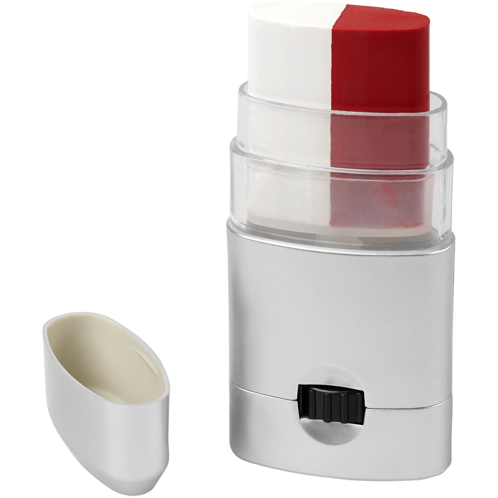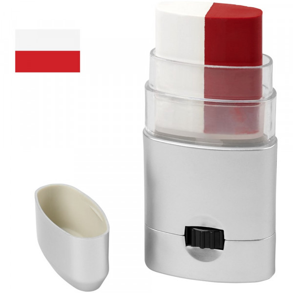 Gemakkelijk te reinigen bodypaint beschikbaar in een breed scala aan kleurencombinaties die de vlaggen van Frankrijk, Duitsland, Italië, Nederland, België, Portugal, Spanje, Oostenrijk, Denemarken, Zwitserland, Zweden en Polen vertegenwoordigen. Kan ook op het gezicht worden aangebracht en kan worden verwijderd met make-upreiniger of met water en zeep. Geproduceerd volgens GMP (Good Manufacturing Practices) nalevingsvereisten en voldoet aan de EU-regelgeving voor cosmetische producten (Verordening (EG) nr. 1223/2009). CPNP registratienummer 3260279.