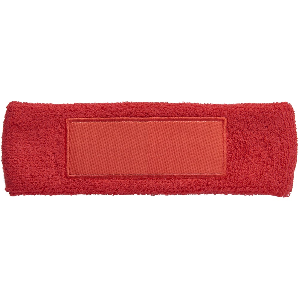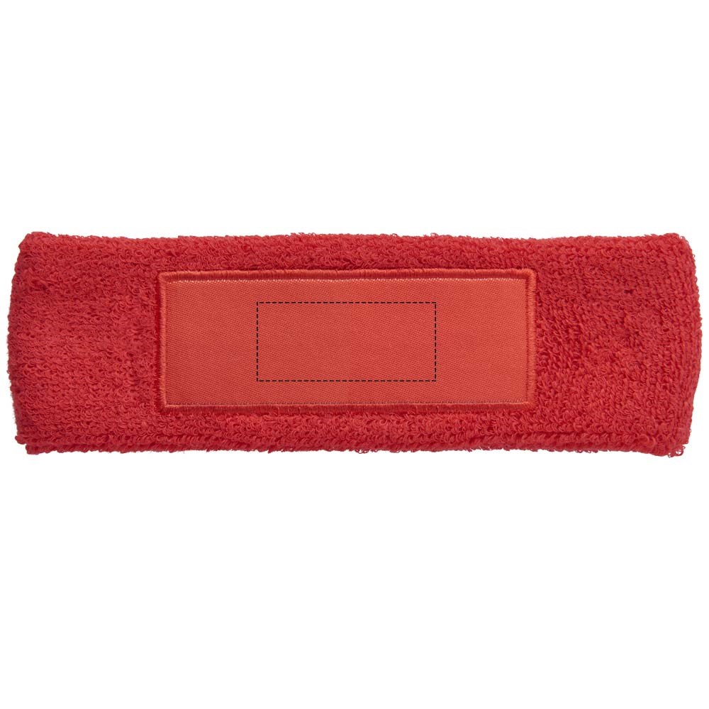 Zachte en absorberende elastische katoenen hoofdband met rechthoekige 90x30mm patch voor het plaatsen van een logo.
