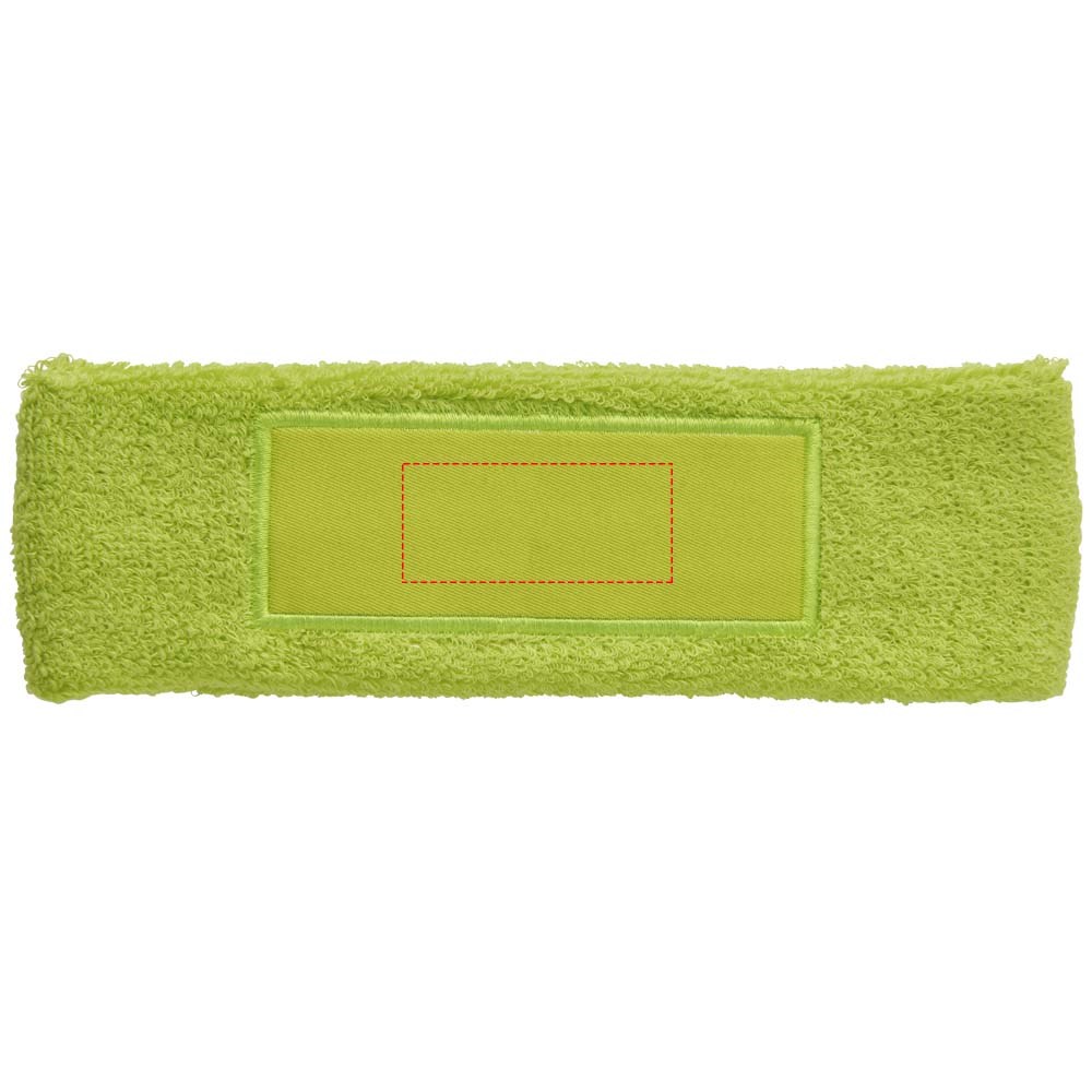 Zachte en absorberende elastische katoenen hoofdband met rechthoekige 90x30mm patch voor het plaatsen van een logo.