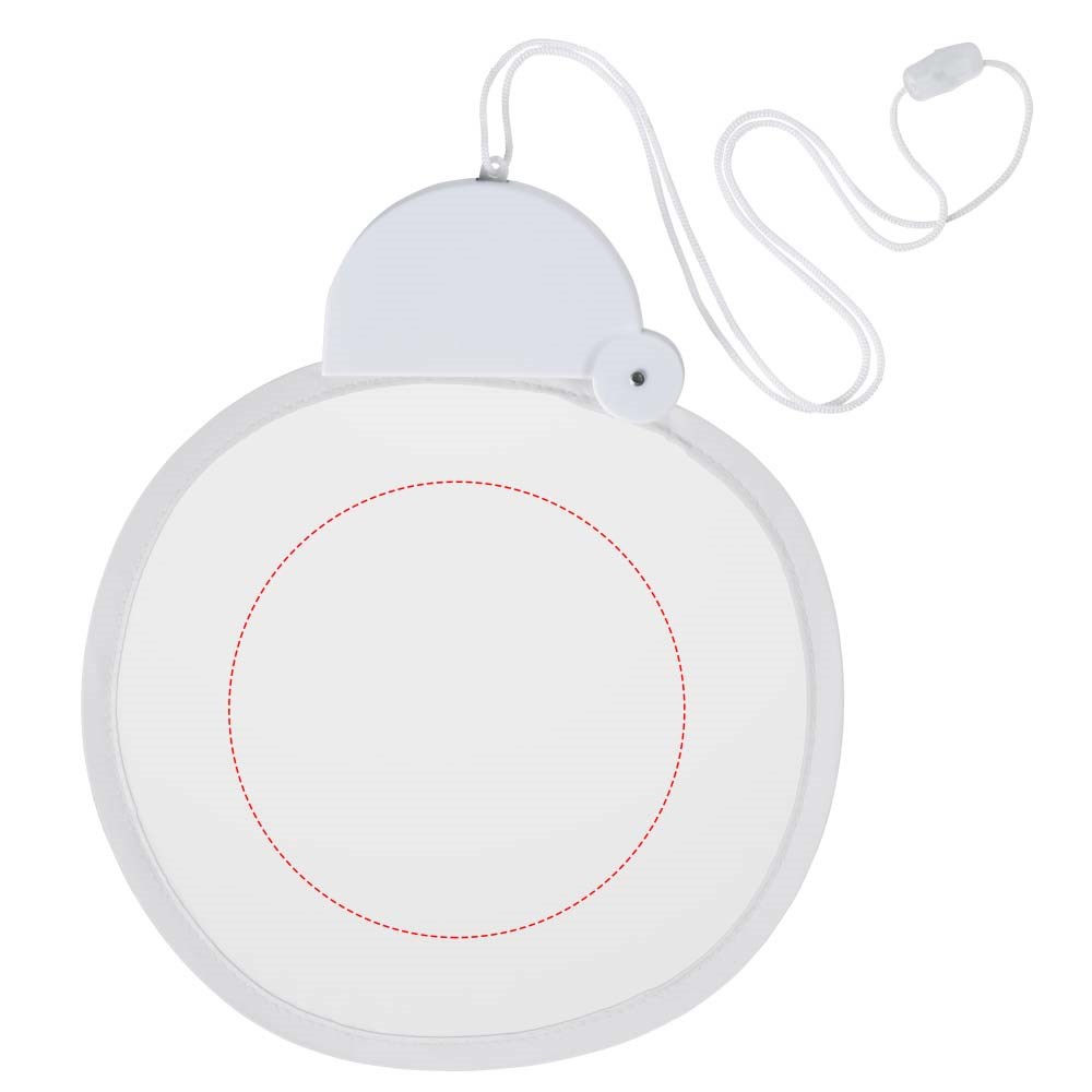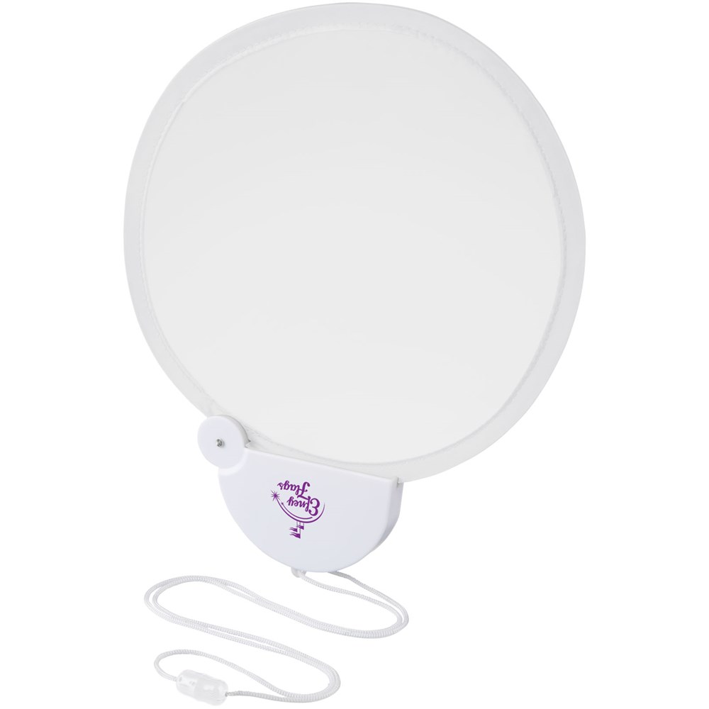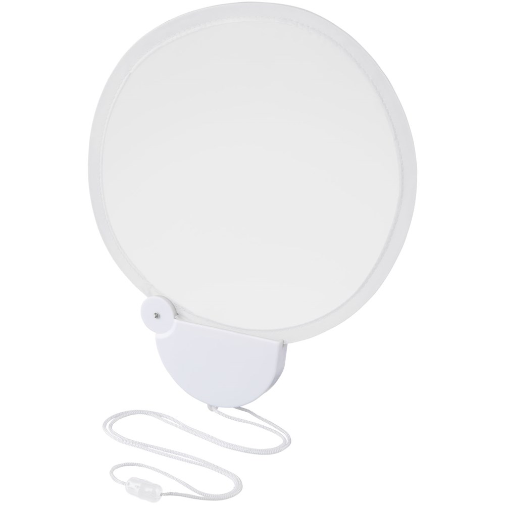 Flexibele nylon ventilator die je terugvouwt in de plastic behuizing. Inclusief nekkoord.