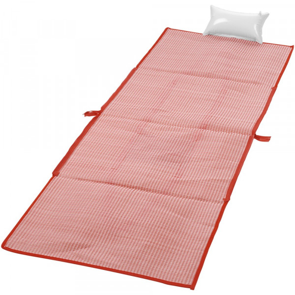 2-in-1 opvouwbare strandmat in een handige schoudertas van 60 x 44 cm. Inclusief zakje en opblaasbaar kussen. Lengte hengsel 28 cm.