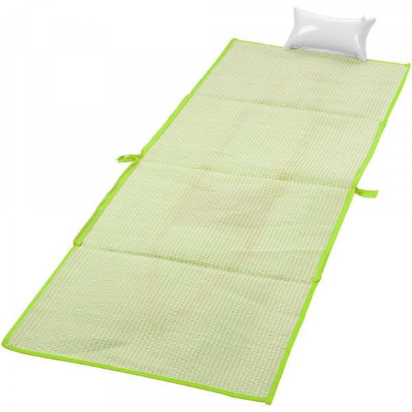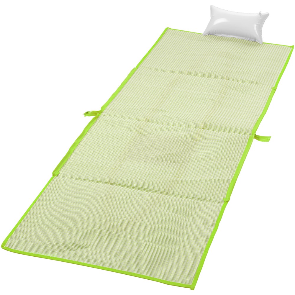 2-in-1 opvouwbare strandmat in een handige schoudertas van 60 x 44 cm. Inclusief zakje en opblaasbaar kussen. Lengte hengsel 28 cm.