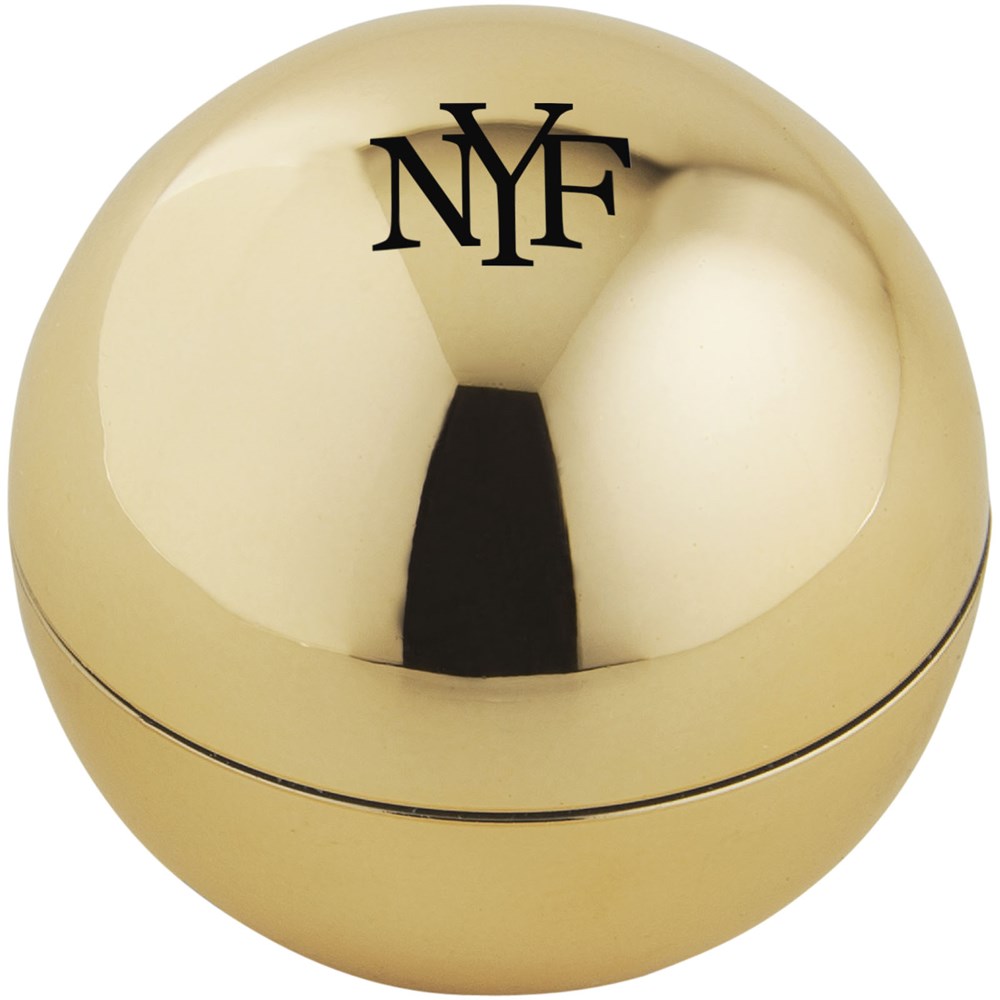 Lippenbalsem met vanillesmaak in een rond metallic potje met draai deksel. Neutrale kleur lippenbalsem. 1 kleur bedrukking in zwart alleen mogelijk.
