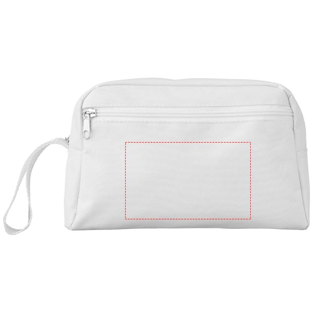 Toilettas met band, hoofdvak met ritssluiting en een rits op de voorzijde.meer