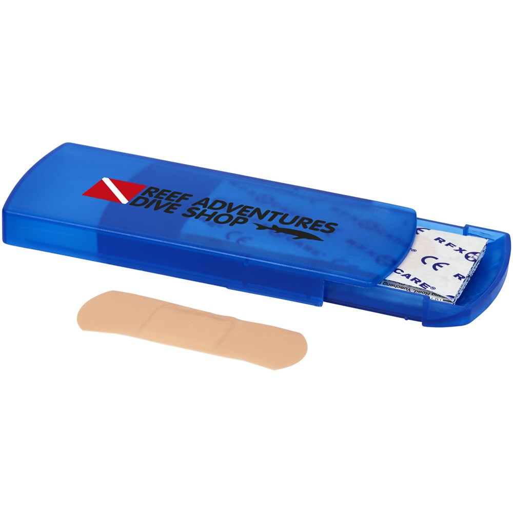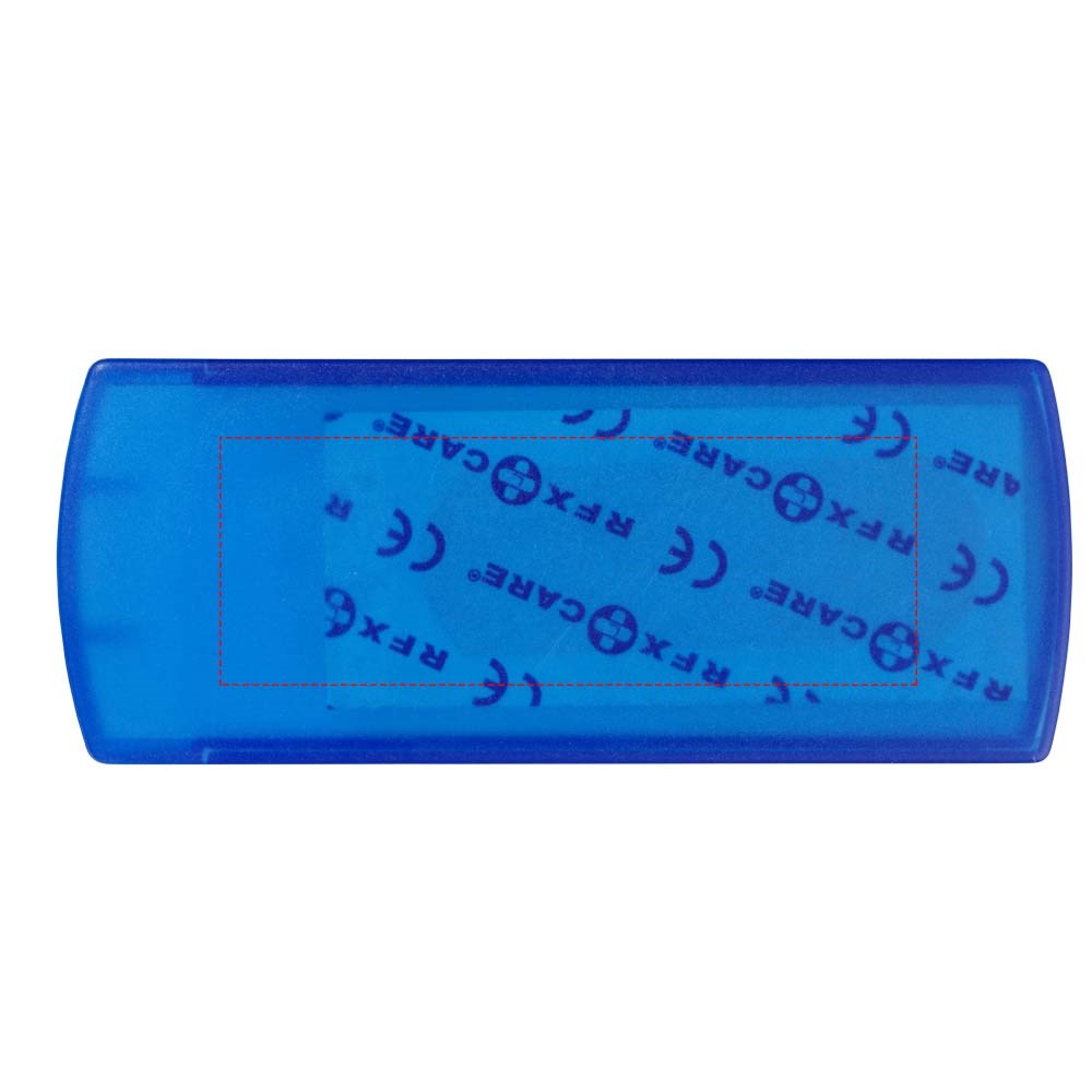 Draagbare minibox met 5 plakpleisters van 56x19 mm, bedoeld voor gebruik op kleine snij- en schaafwonden. De pleisterbox heeft een groot decoratievlak. De plakpleisters zijn gereguleerd, getest en gecertificeerd als Medische Hulpmiddelen van Klasse I in overeenstemming met de Richtlijn Medische Hulpmiddelen MDD 93/42/EEG van 14 juni 1993.