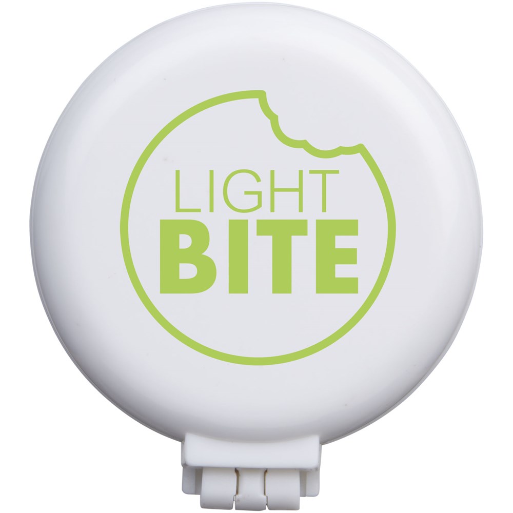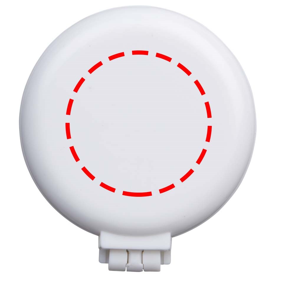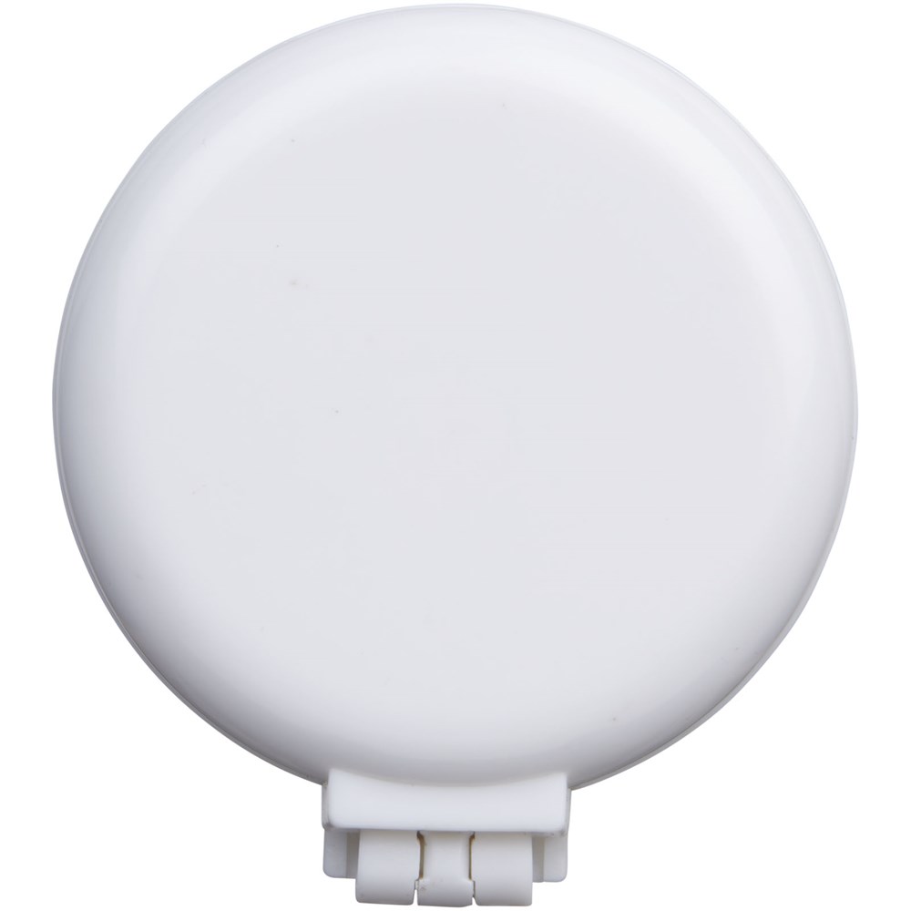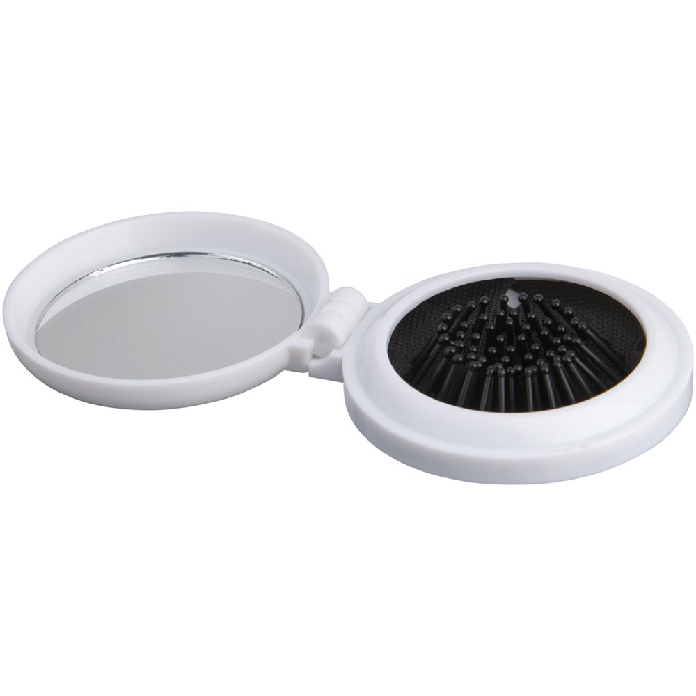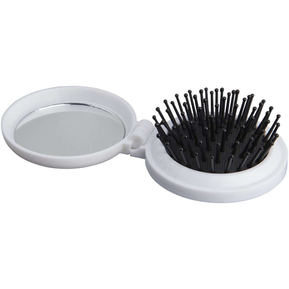 Opvouwbare haarborstel met spiegel in kunststof houder.