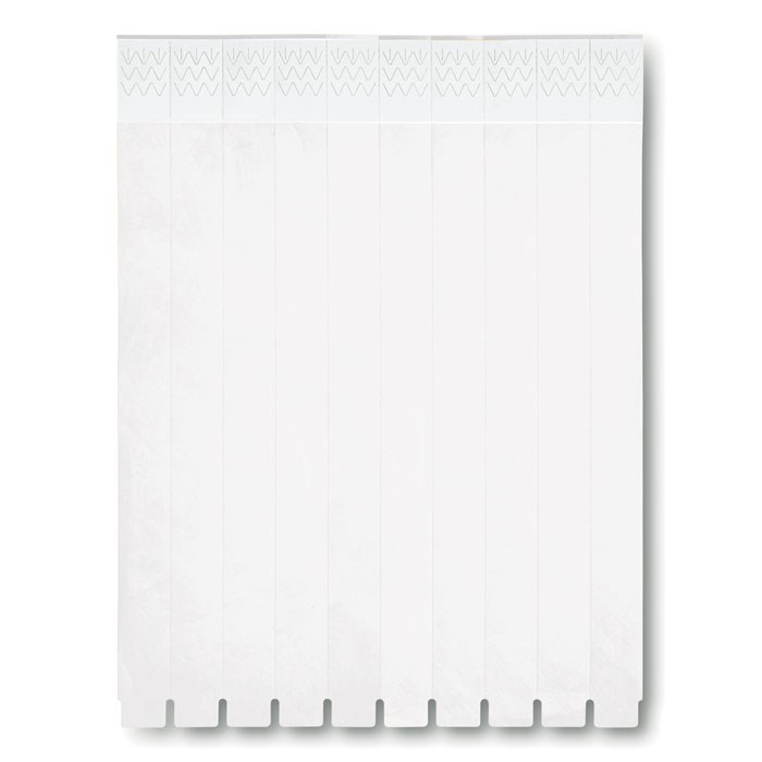 Één vel met 10 evenementen polsbandjes. DuPont ™ Tyvek® 19mm inclusief unieke nummering.
