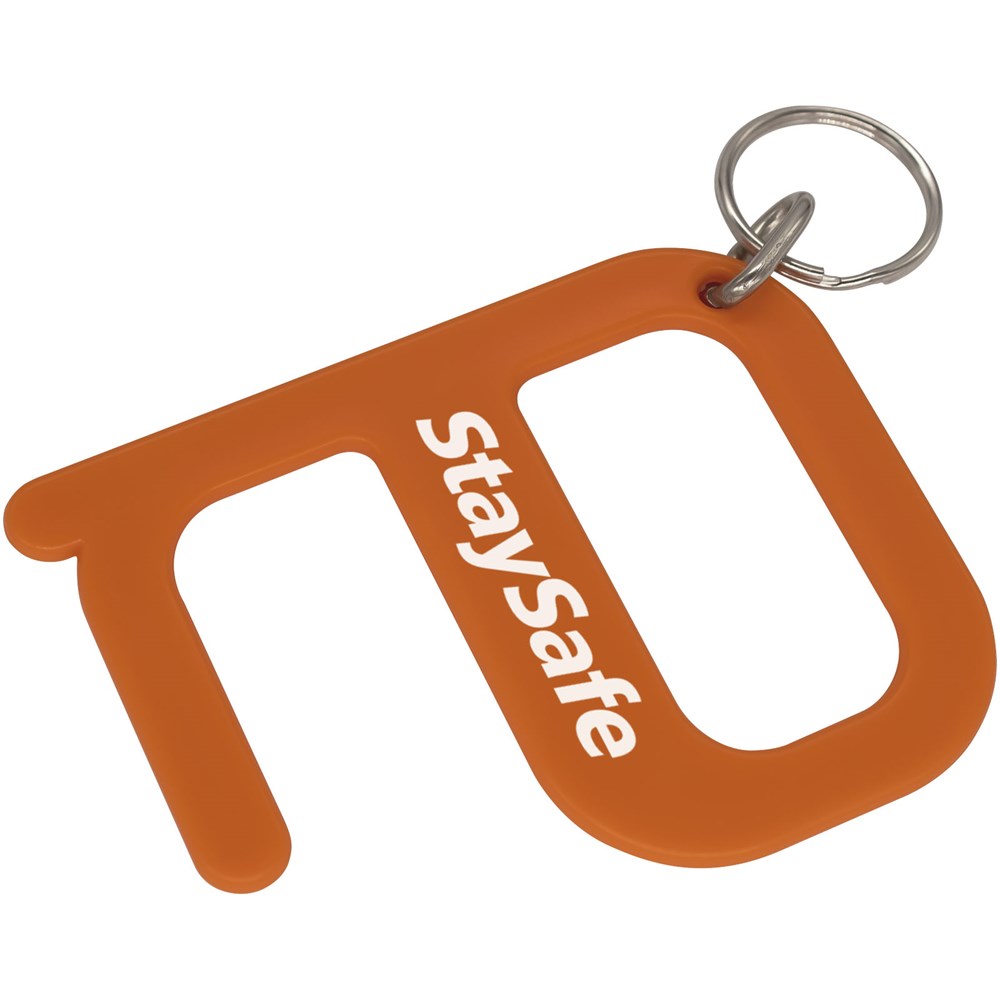 Een eenvoudig maar effectief hygiëne-item dat de gebruiker in staat stelt om deuren en drukknoppen te openen zonder direct contact met de handen. Vervaardigd uit versterkte materialen voor extra duurzaamheid. Dit product bevat Biomaster antimicrobiële technologie die bescherming biedt tegen de groei van schadelijke micro-organismen voor de levensduur van het product. Geleverd als sleutelhanger.