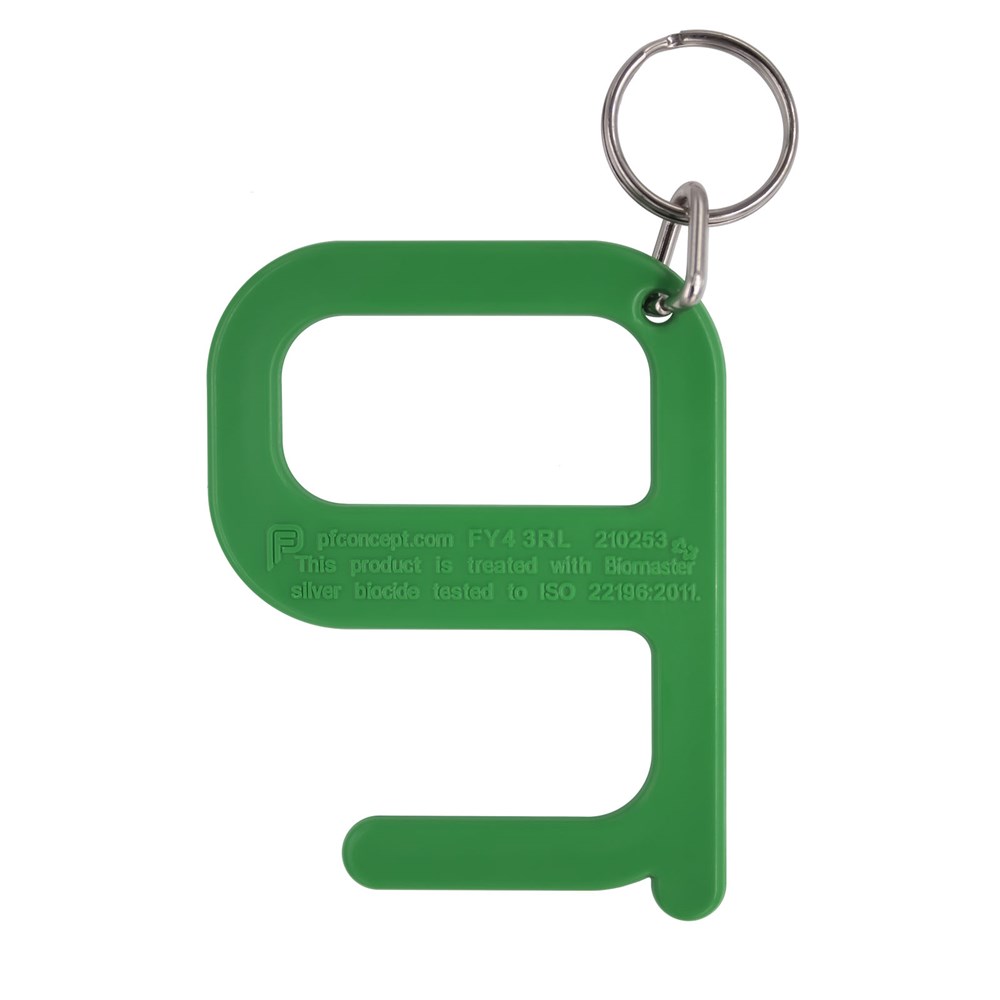Een eenvoudig maar effectief hygiëne-item dat de gebruiker in staat stelt om deuren en drukknoppen te openen zonder direct contact met de handen. Vervaardigd uit versterkte materialen voor extra duurzaamheid. Dit product bevat Biomaster antimicrobiële technologie die bescherming biedt tegen de groei van schadelijke micro-organismen voor de levensduur van het product. Geleverd als sleutelhanger.