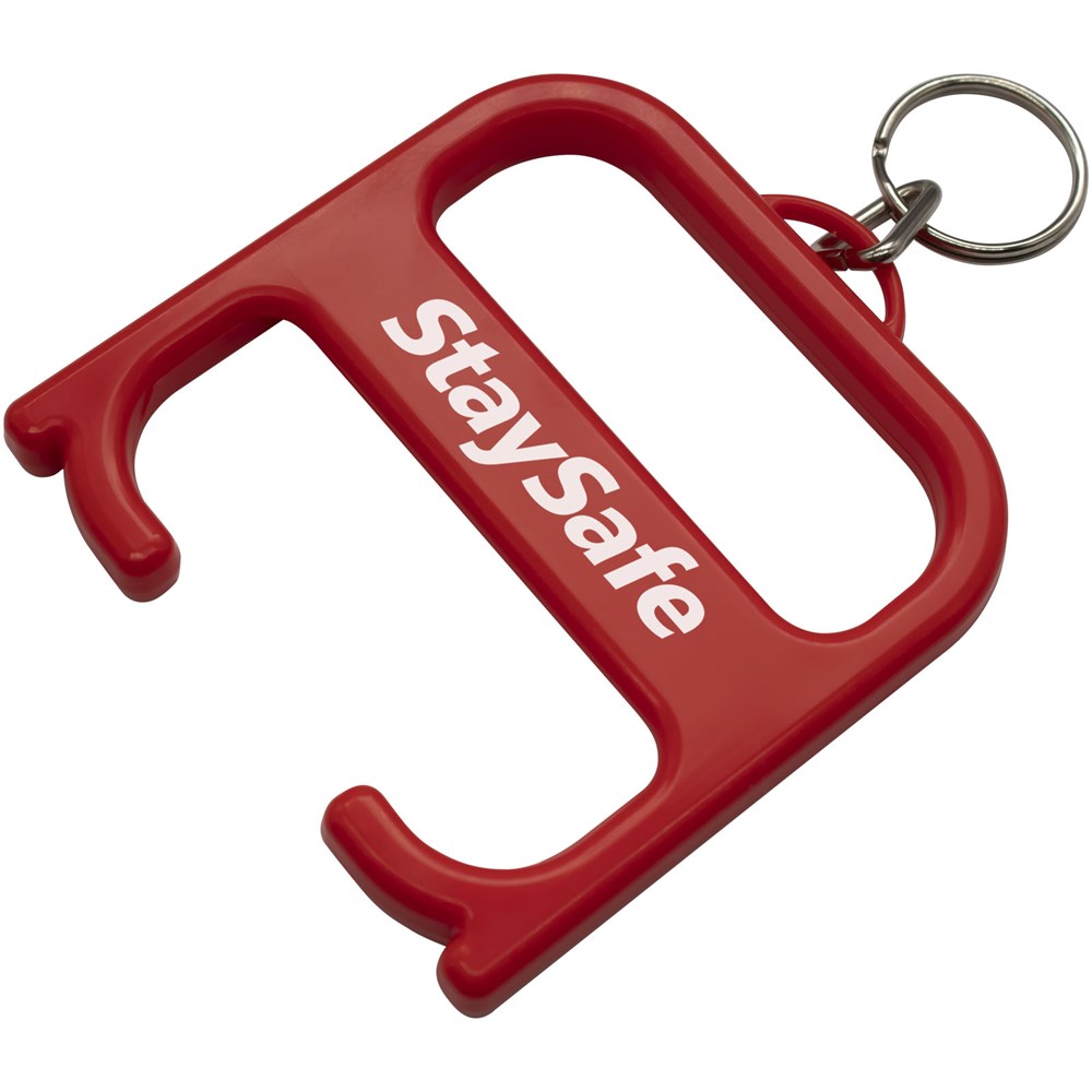 Een robuust hygiëne-item dat de gebruiker in staat stelt om deuren te openen en drukknoppen in te toetsen zonder direct contact. Vervaardigd uit versterkte materialen voor extra duurzaamheid. Dit product bevat Biomaster antimicrobiële technologie die bescherming biedt tegen de groei van schadelijke micro-organismen voor de levensduur van het product. Geleverd met een sleutelhanger.