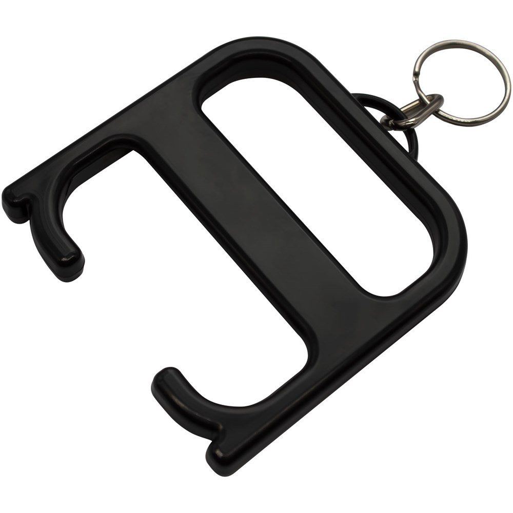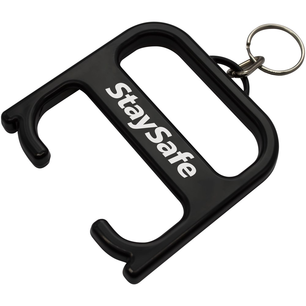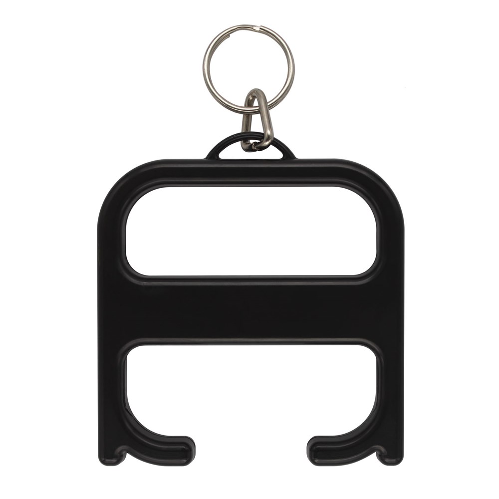 Een robuust hygiëne-item dat de gebruiker in staat stelt om deuren te openen en drukknoppen in te toetsen zonder direct contact. Vervaardigd uit versterkte materialen voor extra duurzaamheid. Dit product bevat Biomaster antimicrobiële technologie die bescherming biedt tegen de groei van schadelijke micro-organismen voor de levensduur van het product. Geleverd met een sleutelhanger.