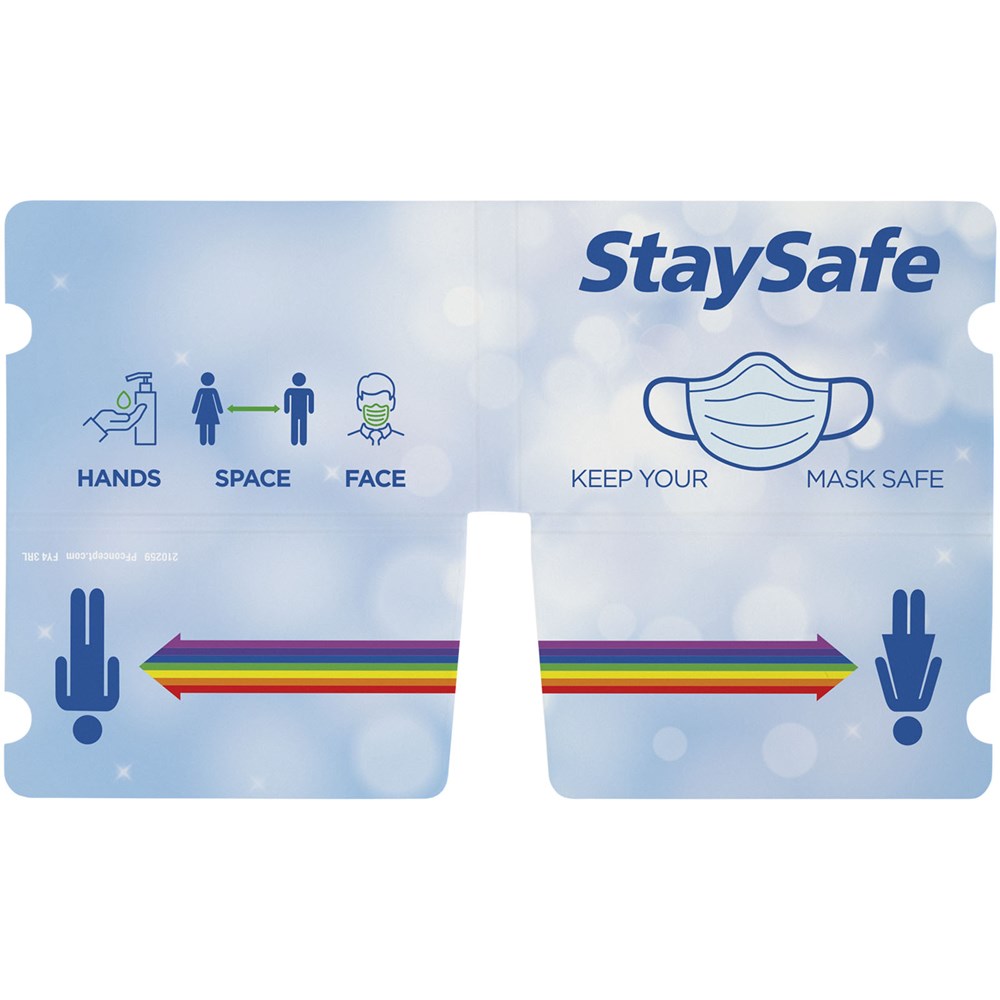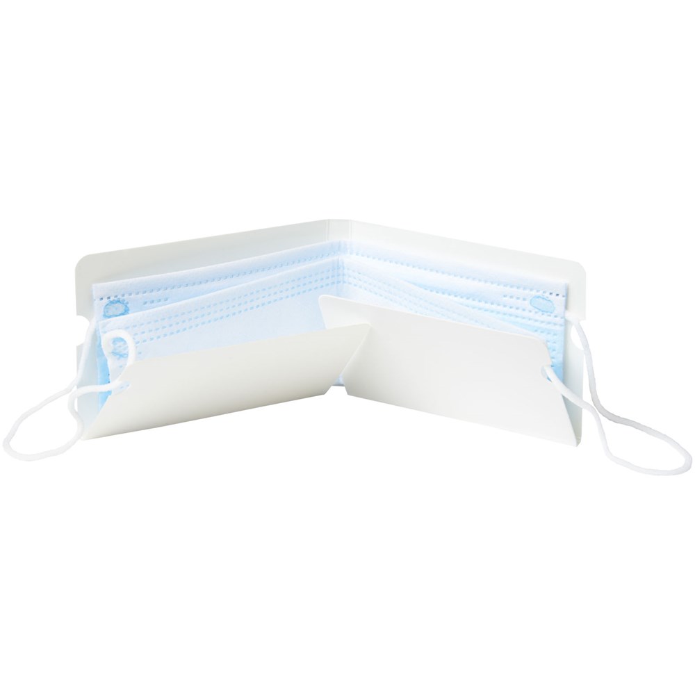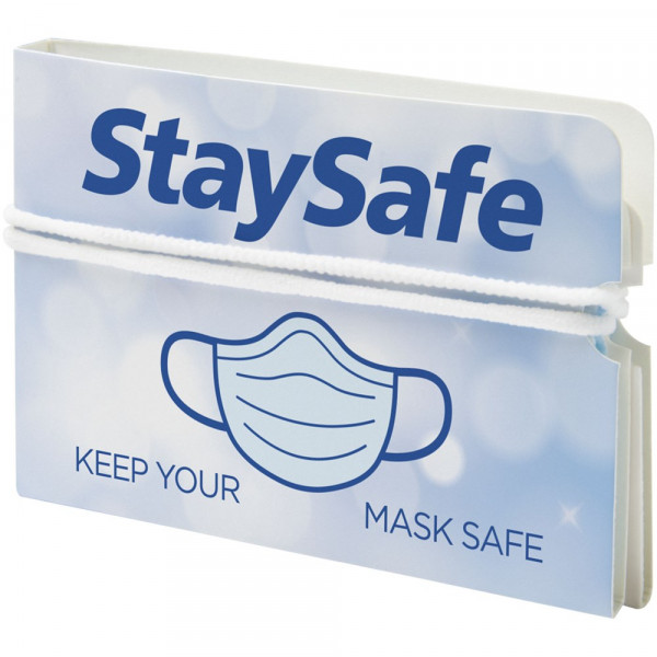 Handig opvouwbaar zakje voor het hygiënisch opbergen van mondmaskers wanneer deze niet gebruikt worden. De hoes is gemaakt van een gecoate kaart van 280 g/m², wat een levendige afwerking geeft wanneer deze wordt bedrukt met een full colour design over de gehele hoes. Plaats het mondkapje eenvoudig over het vlakke kaartvel, volg de vouwtekens en sluit het zakje veilig met de oorelastiekjes van het kapje.