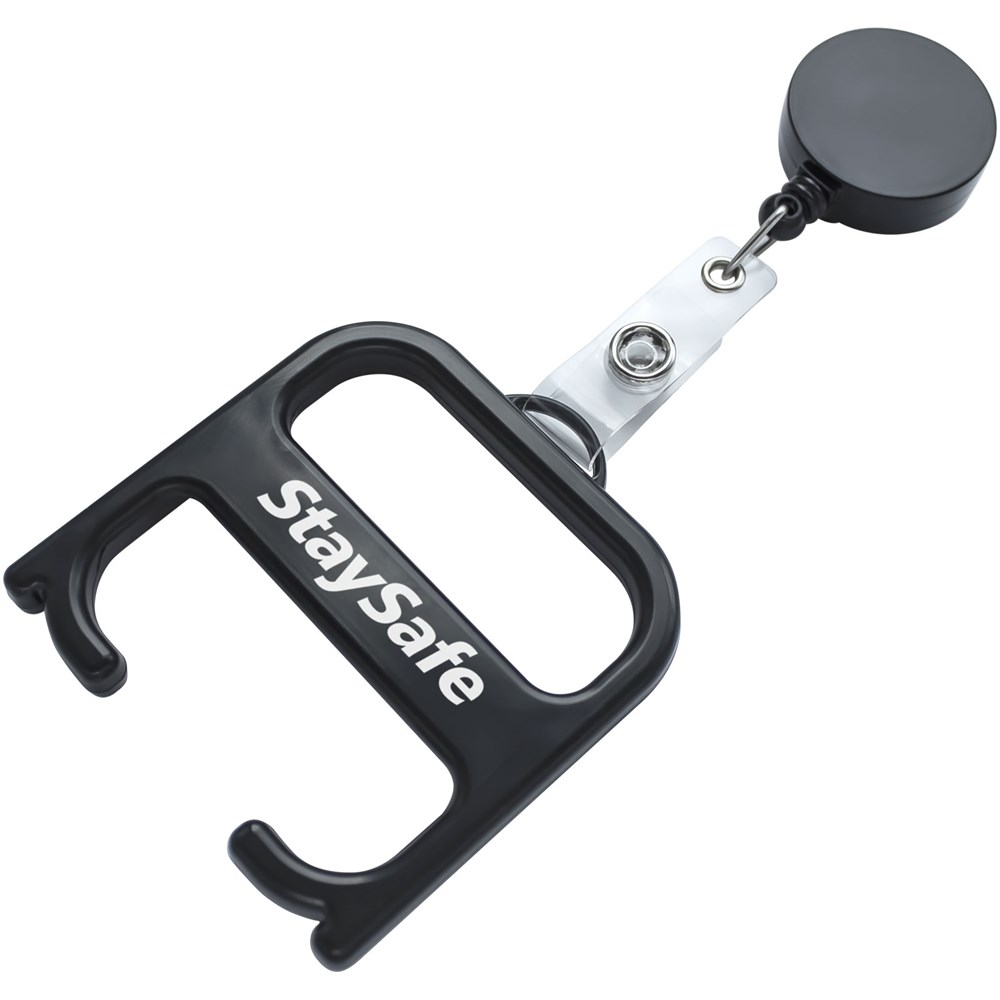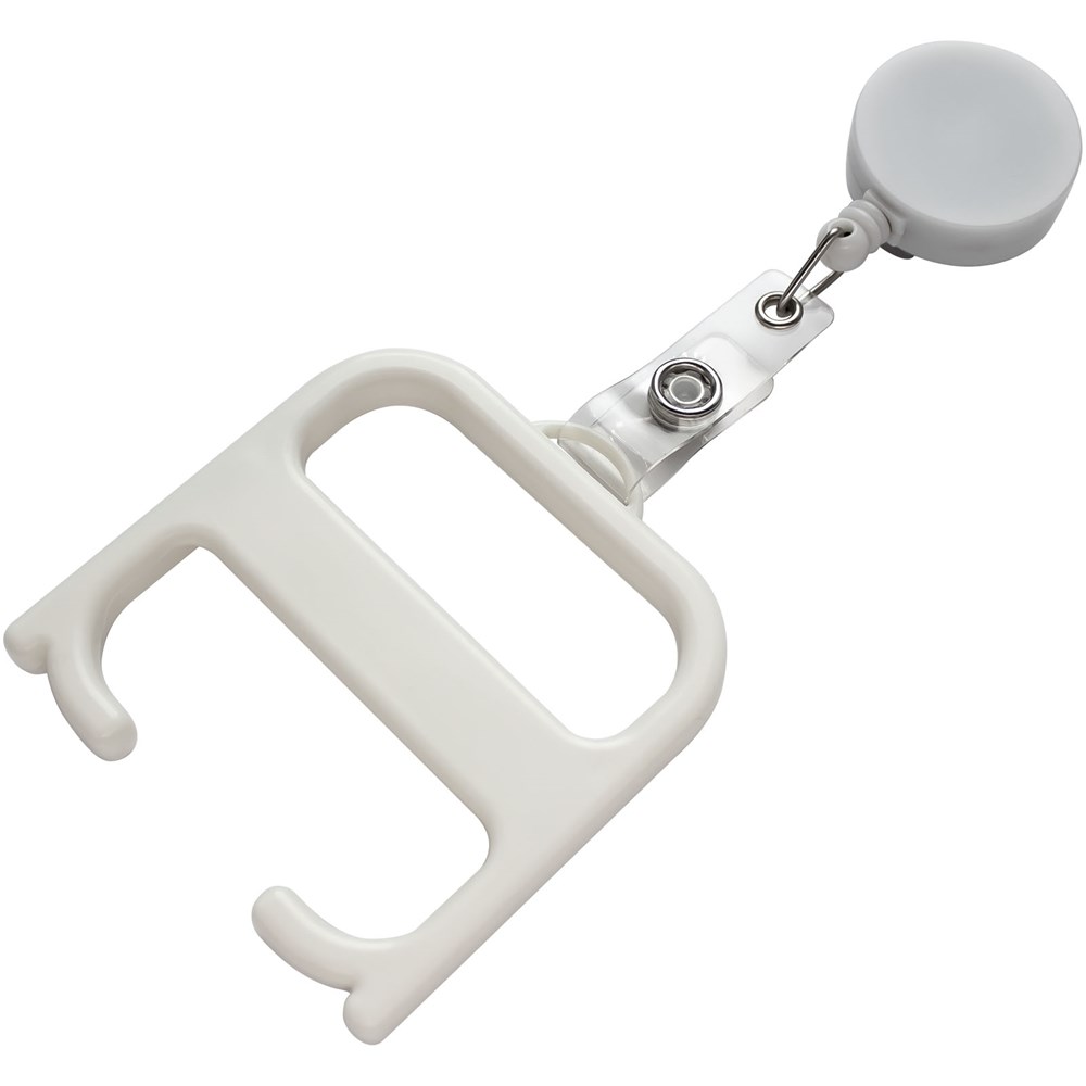 Een robuust hygiëne-item dat de gebruiker in staat stelt om deuren te openen en drukknoppen in te toetsen zonder direct contact. Vervaardigd uit versterkte materialen voor extra duurzaamheid. Dit product bevat Biomaster antimicrobiële technologie die bescherming biedt tegen de groei van schadelijke micro-organismen voor de levensduur van het product. Geleverd met een rollerclip.
