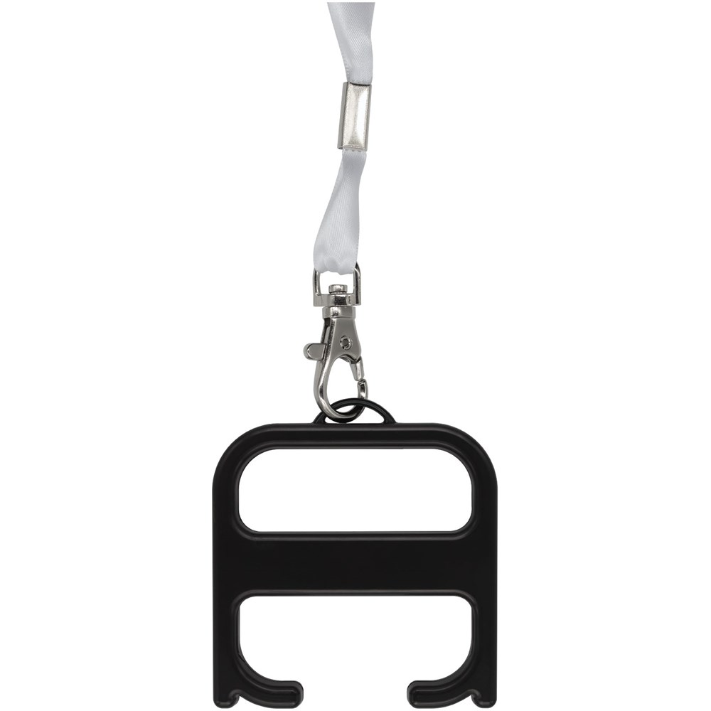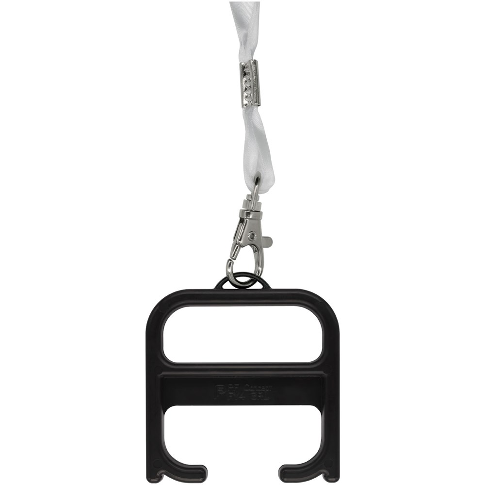 Een robuust hygiëne-item dat de gebruiker in staat stelt om deuren te openen en drukknoppen in te toetsen zonder direct contact. Vervaardigd uit versterkte materialen voor extra duurzaamheid. Dit product bevat Biomaster antimicrobiële technologie die bescherming biedt tegen de groei van schadelijke micro-organismen voor de levensduur van het product. Geleverd met een lanyard.
