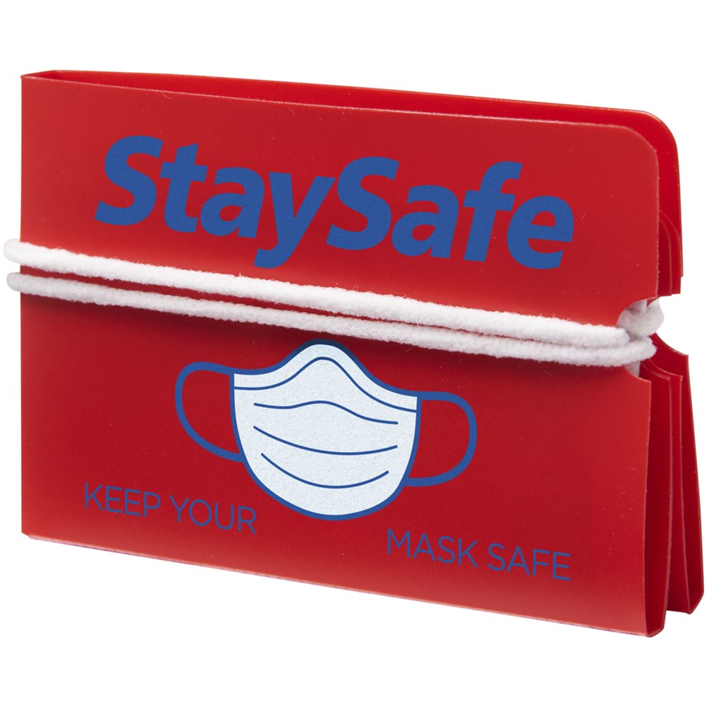 Handige opvouwbare buidel voor het hygiënisch opbergen van mondmaskers wanneer deze niet in gebruik zijn. Plaats het masker eenvoudig over het platte PP-vel, volg de vouwtekens en sluit de buidel veilig met de oorelastiekjes van het masker.
