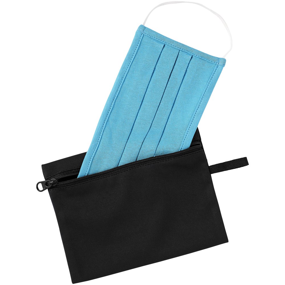 Zakje met ritssluiting voor het veilig en hygiënisch opbergen van mondmaskers. Ideaal om in de auto, handtas of werktas te bewaren, om altijd een mondmasker bij de hand te hebben. Met stoffen lus voor eenvoudige bevestiging aan bijvoorbeeld een sleutelhanger.